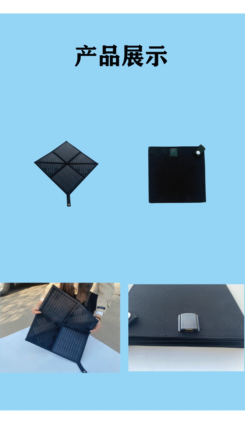 20W便攜太陽能折疊包戶外手機(jī)充電小風(fēng)扇光伏板USB可折疊太陽能板